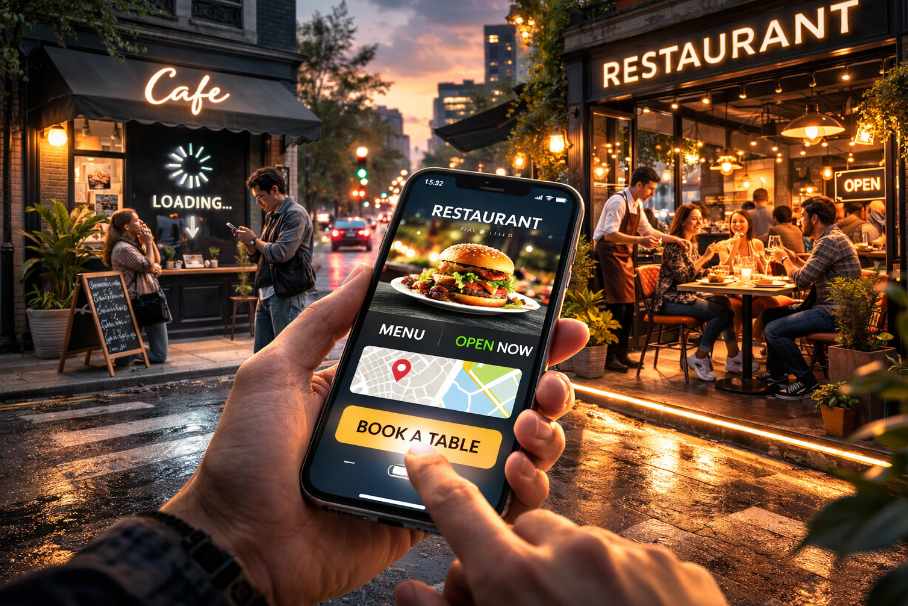 Consider the common scenario of someone searching for dinner on a busy street. They open a site, scan the menu, confirm the location, and check whether the place is open. If all of that happens within a few seconds, the decision is practically made.